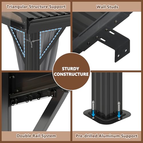 domi outdoor living Domi 10x12FT Sunroom Gazebo Solarium Aluminum Wall Mounted Gazebo with Galvanized Steel Sloping Roof Lockable PC Screen House&Sliding Door Lean to Gazebo for Patio Deck Lawn
