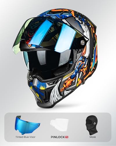 ILM Motorcycle Helmets for Adult Men Women Full Face DOT ECE Powersports Dual Visor Street Racing Helmet with Pinlock Cascos para Motos Model MF509 (Ronin Blue S) Price in USA
