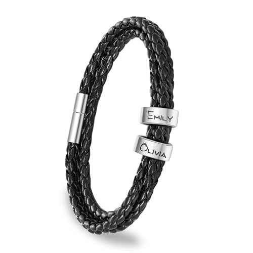 ShineSand Personalized Mens Leather Bracelet with Custom Bea...