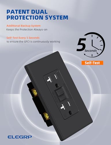 ELEGRP GFCI Outlet 20 Amp Self-Test GFI Electrical Outlet with Thinner Design TR Tamper Resistant GFCI Receptacle Ground Fault Circuit Interrupters with Wall Plate UL Listed Matte Black 10 Pack Price in USA
