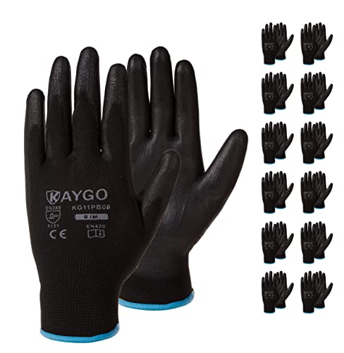 KAYGO Safety Work Gloves PU Coated-12 Pairs KG11PB Seamless ...