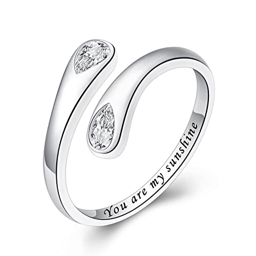 Love Gold Rings for Women - 18K Gold Plated Stainless Steel Cubic Zirconia Friendship Ring Band Wedding Party Trendy Jewelry Christmas Valentine's Day Birthday Gifts for Her Mom Girlfriend