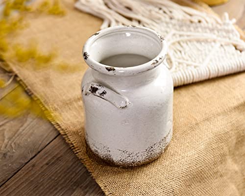 Quoowiit Ceramic Rustic Farmhouse Vase Distressed Decorative Flower Vase for Home Decor Ideal Shelf Decor White Boho Vase for Living Room Bedroom Kitchen Office Decor Centerpiece Table Decorations