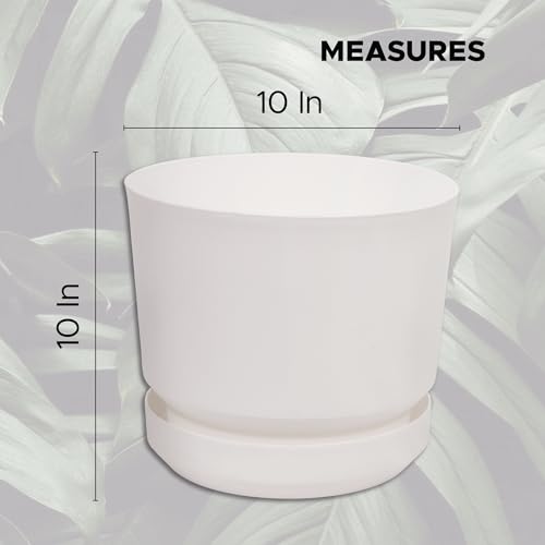 Introducing the 6 Inch Plant Pots Flower Pot a must-have for all plant enthusiasts and gardening enthusiasts alike. These pots are not only practical but also add a touch of modern elegance to any space.Designed with functionality in mind these 6 inch plant pots are perfect for repotting plants and flowers ranging from 3 to 5 inches. The included 5 pack saucers prevent water from accumulating at the base of the pot ensuring optimal drainage and ventilation. With leaf-shaped drainage holes on the bottom these pots allow excess water to escape while keeping the soil moist and well-ventilated. No more worrying about overwatering or soil-loss!