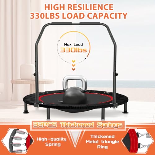 Trampoline for Kids Update T-handrail Adjustable Baby Toddler Trampoline with Basketball Hoop 440lbs Anti-Rollover Round Bottom Indoor Outdoor Toddler Trampoline with Enclosure (Light Blue Pink) Price in USA