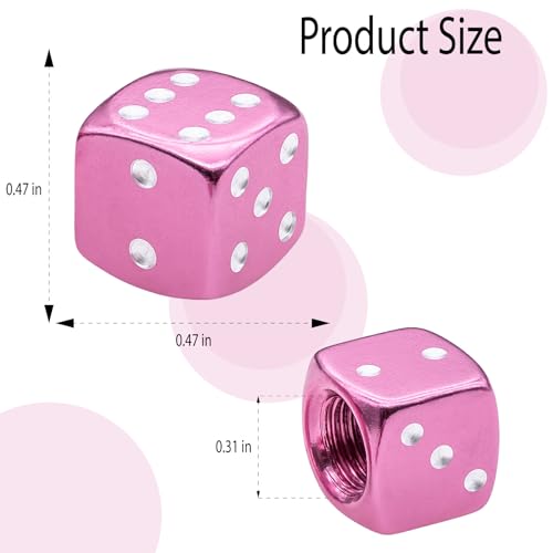 MEAJOO 4PCS Aluminum Dice Tire Valve Stem Caps Universal Aluminium Alloy Dustproof Tire Valve Stem Covers for Cars SUV Trucks Bikes Motorcycles Bicycles(Pink)