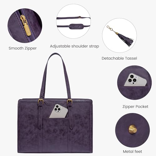 LOVEVOOK Laptop Bag for Women Vintage Leather Laptop Tote 15...