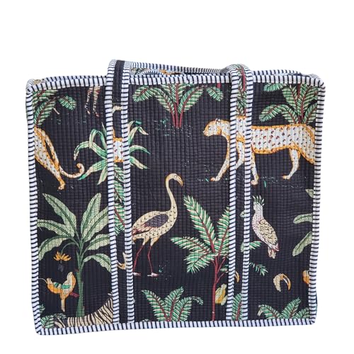 100% Cotton Black Jungle Print Shoulder Bag Tote Bag Women R...