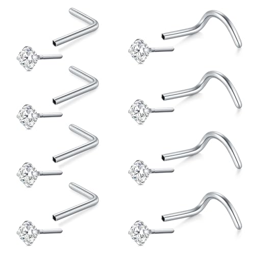 Briana Williams 20G Nose Rings Studs L Shaped Screw Nose Rings for Women Surgical Stainless Steel Nose Piercings Jewelry Push in Threadless Nose Studs 2mm Diamond CZ