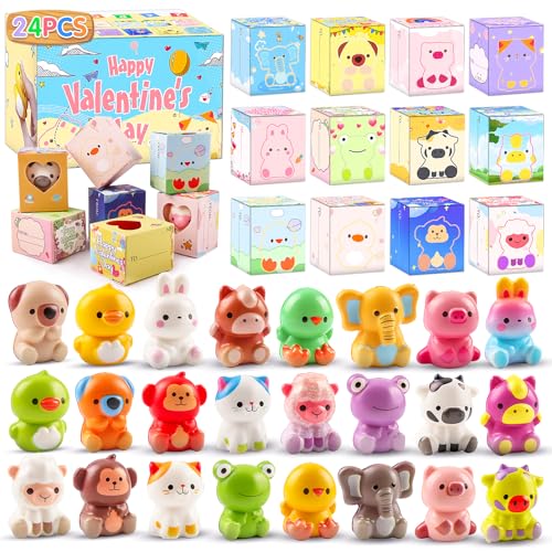 Valentines Day Gifts for Kids 28 Pack Valentines Cards with Squeeze Animals with Popping Eyes Keychains Bulk Sensory Fidget Toys for Boys Girls Classroom Exchange Prizes School Activities Party Favor Price in USA