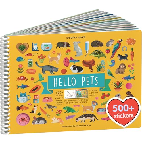 CUPKIN Hello Pets Stickers for Toddlers Kids Sticker Book Gift Pets Activity Book for Children Toddler Travel Activity 500+ Animal Stickers + 12 Sticker Scenes and Coloring Book Pages