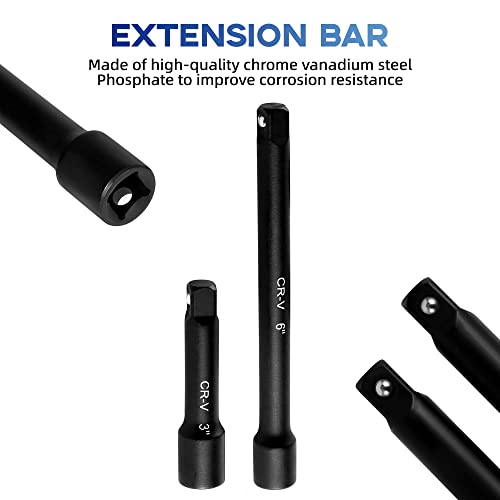 VEVOR 3/8\" Drive Impact Socket Set 48 Piece Socket Set SAE (5/16\" -3/4\") & Metric (8-22mm)6 Point Cr-V Drive Extension Bar Universal Joint & Power Drill Adapter Includes Storage Case