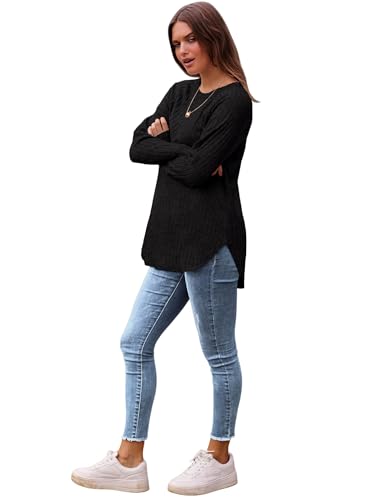 Trendy Queen Womens Long Sleeve Shirts Crop Tops Basic Tight Slim Fit Y2K T Shirts Winter Clothes 2024 Black M Price in USA