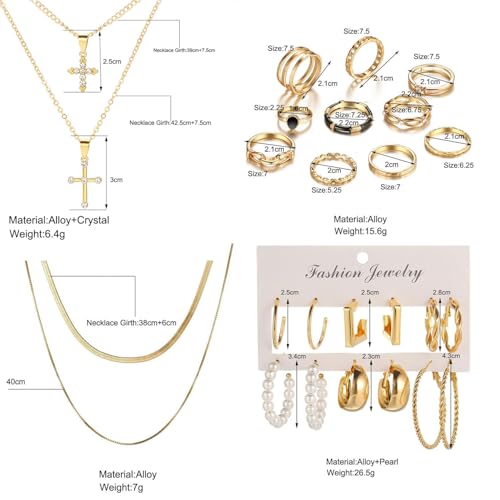 CONGYING 65 Pcs Gold Jewelry Set with 6Pcs Layered Necklace ...