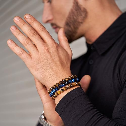 RANKEEF Tiger Eye Bracelet For Men 8MM Natural Stone Beads B...
