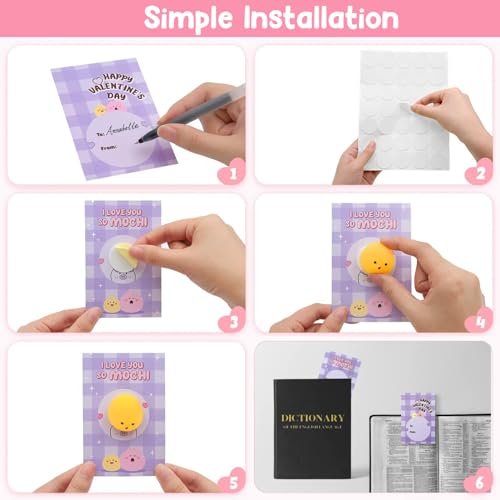 JOYIN 36 Packs Valentine’s Day Mochi squishy toys Stress Relief Fidget Toys Kawaii Mochi Squeezes for Kids Valentine's Party Favors Classroom Gift Exchange and School Rewards DELUXE GIFT SET: Elevate your Valentine's Day classroom exchange with 36 delightful Gift Cards Mochi squishy toys and Bags which can put the first two items together and give them away. These perfect stress relief fidget toys make fun and relax for kids. KAWAII DESIGNS: Enjoy 18 charming designs that provide endless entertainment and stress relief. There are 18 designs including a white bear a pink bear a cat a unicorn a peach a lollipop a watermelon a sunflower a apple a red heart a pink heart a red cherry a pink cherry a duck a strawberry an orange and 2 different rabbit all in valentines theme.These adorable Mochi squishy toys are perfect for fidgeting and relieving anxiety. CREATIVE RELAXATION: These Kawaii mochi squeezes aren't just cute also a valuable stress relief fidget tool to h