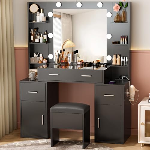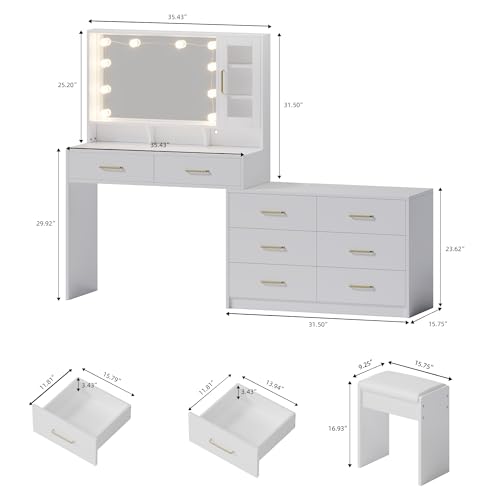Vabches Vanity Desk with Lights Makeup Vanity with Power Strip Dressing Table Set with 2 Large Drawers Vanity Mirror 3 Lighting Color Adjustable Rustic Brown Price in USA