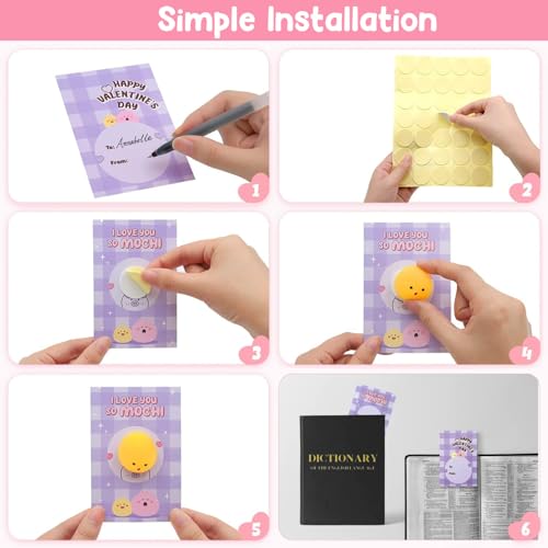 JOYIN 28 Packs Valentine’s Day Heart Gift Cards with Mochi squishy toys and Heart Shells Stress Relief Fidget Toys Cute Miniature Novelty Toys for Kids Valentine‘s Party Favors and School Exchange DELUXE GIFT SUIT: Enjoy 28 Gift Cards with Mochi squishy toys in Valentine’s Day designs with adorable Heart Shells and 7 cute heart love note card designs for a complete and love-filled package. KAWAII DESIGNS: Each Mochi in this suit features various shaped designs including different colored hearts bears sunflowers unicorns and so on. Kawaii Stress Relief Fidget Toys will create an assortment of cute characters to squeeze and enjoy. CREATIVE RELAXATION: Mochi squishy toys offer both cuteness and stress relief beyond the holiday these cartoon Cute Miniature Novelty Toys with Heart Shells have red line that could hang everywhere and easy to carry making indispensable tools for kids of all ages reducing anxiety and providing a soothing sensory experience. GIFT OF CHOICE: A wa
