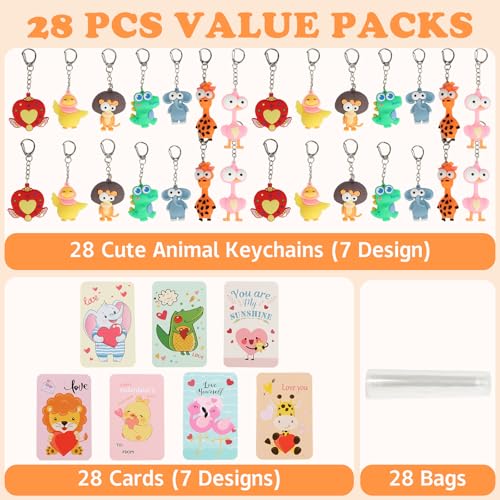 28PCS Valentine's Day Mini Plush Animals Toys Small Stuffed Animal Keychain Cards for Valentine's Classroom Gift Exchange School Prizes Valentines Party Favors Easter Basket Stuffers