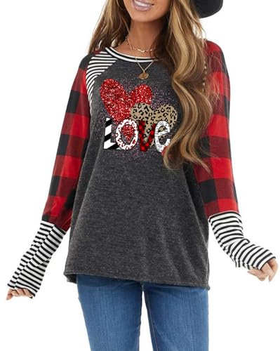 Valentine's Day Shirt Women Buffalo Plaid Love Heart Graphic Tees Valentines Gift Long Sleeve Tops Price in USA
