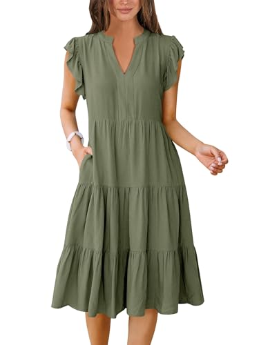 ANRABESS Womens Summer Ruffle Sleeve V Neck Midi Dress 2025 ...