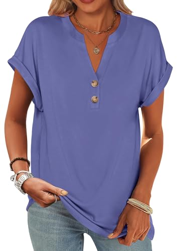 ANRABESS Women's Short Sleeve Henley Tops V Neck Summer Casu...