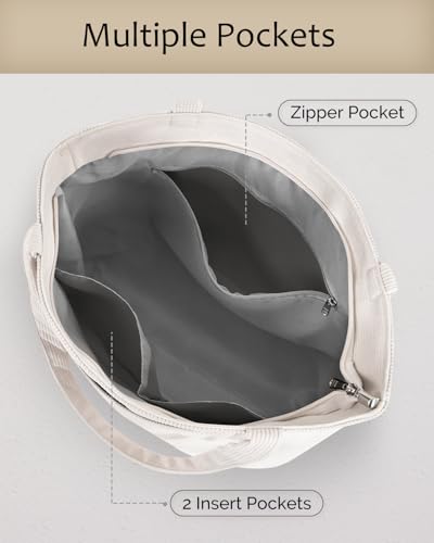 Prite Corduroy Tote Bag for Women Large Shoulder Bag with Zi...