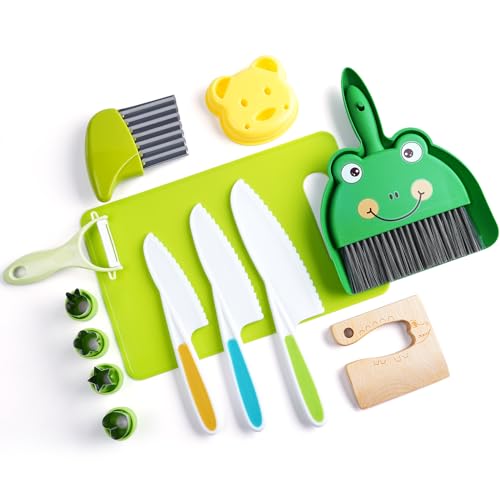 Yeeammk Montessori Kitchen Tools-13pcs Toddler Toys Kids Cooking sets Real with Safe Knife set Gift for 2-3-4-5-6-7-8 Years Old