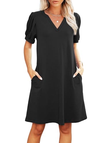 RUMIA V-Neck Summer Casual Sundress for Women- Puff Short Sl...