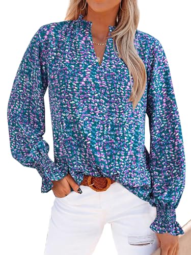 MASCOMODA Womens V Neck Floral Long Sleeve Tops 2024 Summer ...