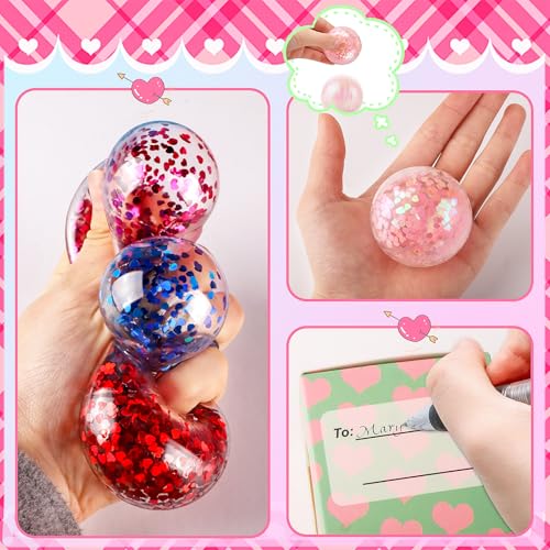Qinline 30 Pack Party Favors for Kids - Mini Heart Pop Fidget Toy with Gift Cards for Kid Boy Girl Bulk Kids Birthday Easter Gifts School Classroom Prizes Exchange Easter Basket Stuffers Egg Fillers