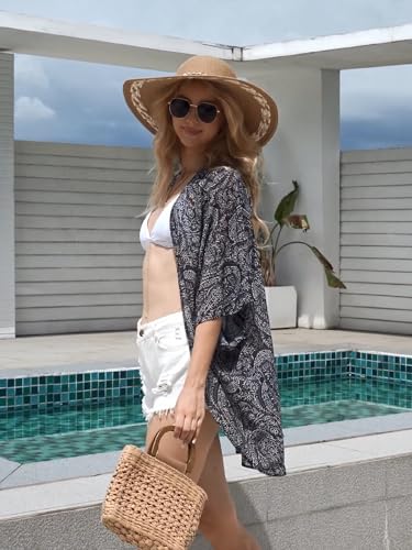 Moss Rose Women's Beach Cover up Swimsuit Kimono Cardigan with Bohemian Floral Print B Grey Price in USA