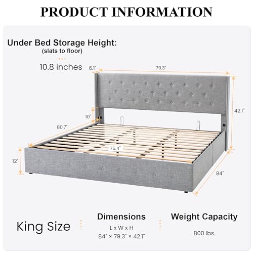 Type-C & USB Power Ports: Built-in Type-C(iPhone) and USB(Android)ports in the middle of the headboard make it more convenient to charge your phone tablet lamp and other electronic devices. Modern Line Design: Simple irregular line style conforms to the current aesthetic trend this is the essential bed frame for creating your modern style room. Comfortable Storage Headboard: No more messy bed you can put your clocks album phone and other decorations on the top of the headboard. Lean on the headboard which is filled with high-density sponge for extreme comfort when you feel tired. Stable Wingback: Additional wingbacks are installed on both sides of the headboard which greatly enhances the stability of the whole bed frame and better support your shoulders and head. Upgraded Bed Frame - The bed frame is consist of a heavy metal frame and 12 solid wood slats. Using upgraded central \"+\" structure to provide up to 1000lbs weight capacity and no box spring is needed. Noise-Free - the