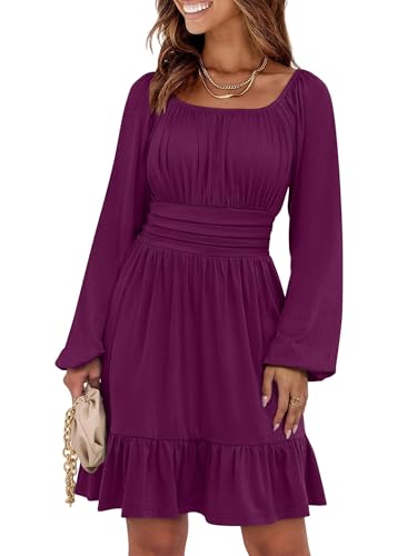 ANRABESS Womens Dress Long Lantern Sleeve Square Neck Elasti...