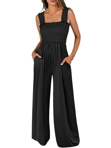 ANRABESS Jumpsuits for Women Sleeveless Summer Casual Smocke...