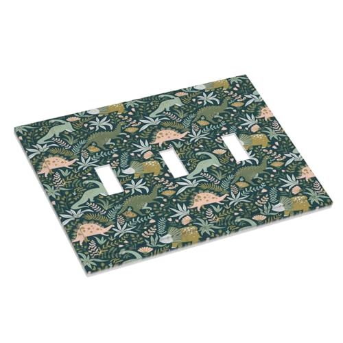 Yamxbfa Cute Dinosaur Green Plants Flowers leaf 3 Gang Light Switch Covers Triple Toggle Wall Plate Decorative Switchplate Electrical Faceplate for Country Bathroom Bedroom Decor Price in USA