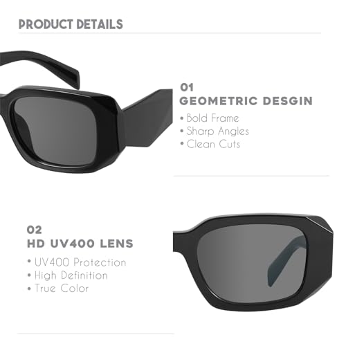 mosanana Trendy Rectangle Sunglasses for Women Men Black Vin...