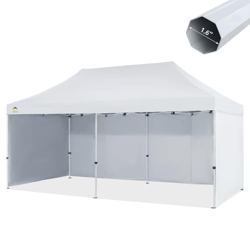 CROWN SHADES 10x20 Pop Up Canopy Tent Thicken Frame Commercial Heavy Duty Tent Silver-Coated with 4 Sidewalls 8 Stakes & 4 Sandbags & 4 Ropes Outdoor Canopies for Events Parties White Price in USA