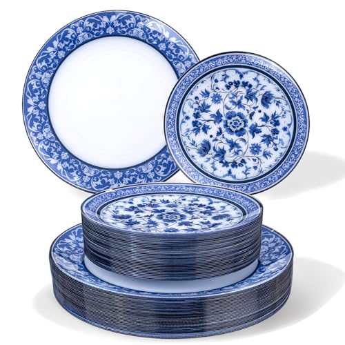 Nervure 350PCS Blue Plastic Plates - Blue Plastic Dinnerware Sets for 50 Guests - 100 Blue Disposable Plates 150 Gold Plastic Silverware 50 Cups 50 Napkins for Wedding & Party Price in USA