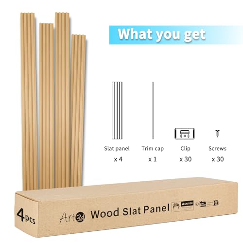 Elevate your space with the Art3d Slat Wood Wall Paneling a perfect blend of style and functionality. Designed for those who appreciate the warmth and timeless elegance of wood this pack includes four panels and one end-trim piece ensuring a seamless and professional finish. Each panel measures an impressive 108 x 5.9 inches providing substantial coverage for interior wall. Art3d Slat Wood Wall Paneling is more than just a decorative element. It's a versatile high-quality solution for transforming your interiors into a stylish and inviting space. Whether you're renovating your home or designing a new office these panels are sure to impress.