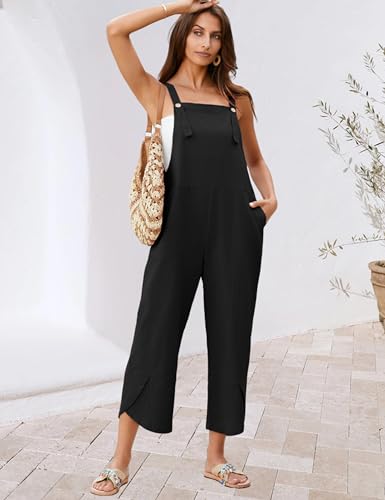 IWOLLENCE Women's Summer Jumpsuits Boho Wide Leg Overalls Casual Loose Rompers with Pockets 2024 Black Medium