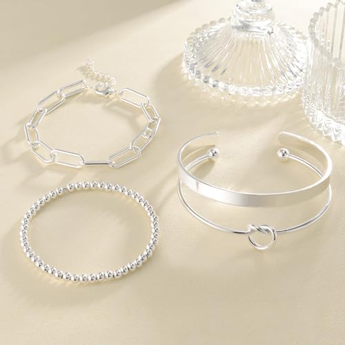 Awinesn Gold Bangles for Women Chunky Stretch Bangles Bracelets Set 18K Gold Plated Stainless Steel Link Chain Bracelets Flexible Wide Wristband Bracelets Set of 3 Jewelry for Women Price in USA