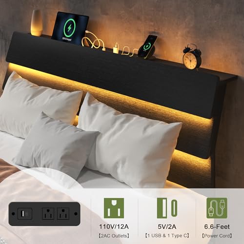 Rolanstar Bed Frame Full Size with Charging Station Bookcase Headboard Bed with LED Light and Sliding Doors Platform Bed with Wooden Slats No Box Spring Needed Noise Free White Price in USA