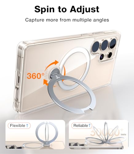 TORRAS 360°Spin Magnetic Stand for Samsung Galaxy S24 Ultra Case Compatible with Magsafe Military Grade Shockproof Slim Protective S24 Ultra Case with Kickstand & Ring Holder Ostand Spin Black