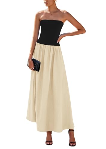 PRETTYGARDEN Women's 2025 Summer Strapless Maxi Dresses Patc...