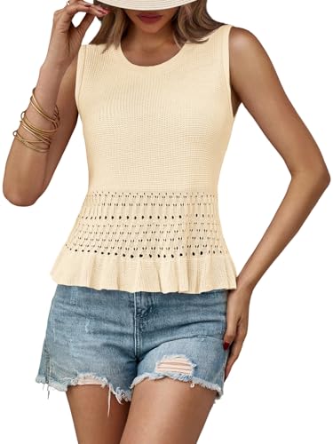 Saodimallsu Womens Crochet Crop Tank Tops Sleeveless Crew Ne...