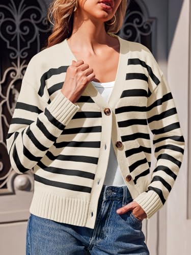 Saodimallsu Womens Striped Cardigan Sweaters V Neck Button D...