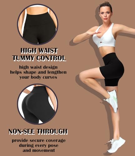 FULLSOFT 3 Pack High Waisted Biker Shorts for Women – 5\" Black Workout Yoga Athletic Spandex Soft Shorts for Gym Running (Black Dark Grey White Small-Medium) Price in USA