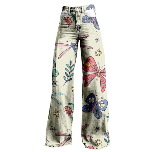 Women's Flare Jeans Wide Leg Baggy Pant Vintage Floral Print...