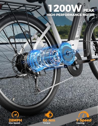 A sturdy high-step commuter-style electric bike offering up to 20 mph on demand uses the same 350-watt motor and 36-volt battery as a commuter bike travel effortlessly across town and commute to work faster without fuss fatigue or sweat – all while wearing your everyday attire. It's easy to ride with a lightweight design. It has tough 26’’ road tires pedal assist with a push-button throttle and 7-Speed gear. In short Jasion EB5 e-bike was expertly designed for city living.